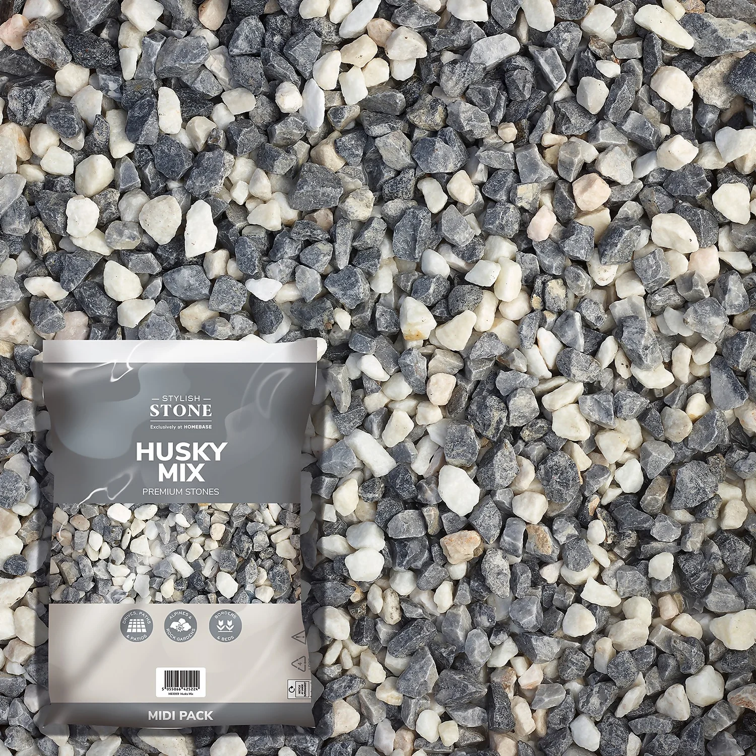 Husky Mix chippings (16-25mm) are great for borders, patios, walkways and driveways. These light grey and white decorative stones are ideal for adding texture and definition to your outdoor areas.